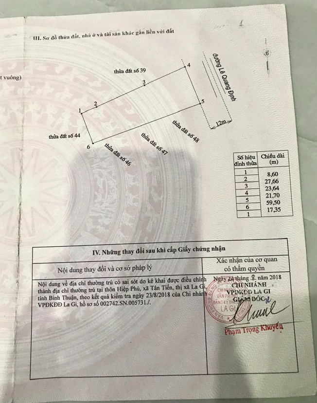 Đất mặt tiền đường nhựa Lê Quang Định